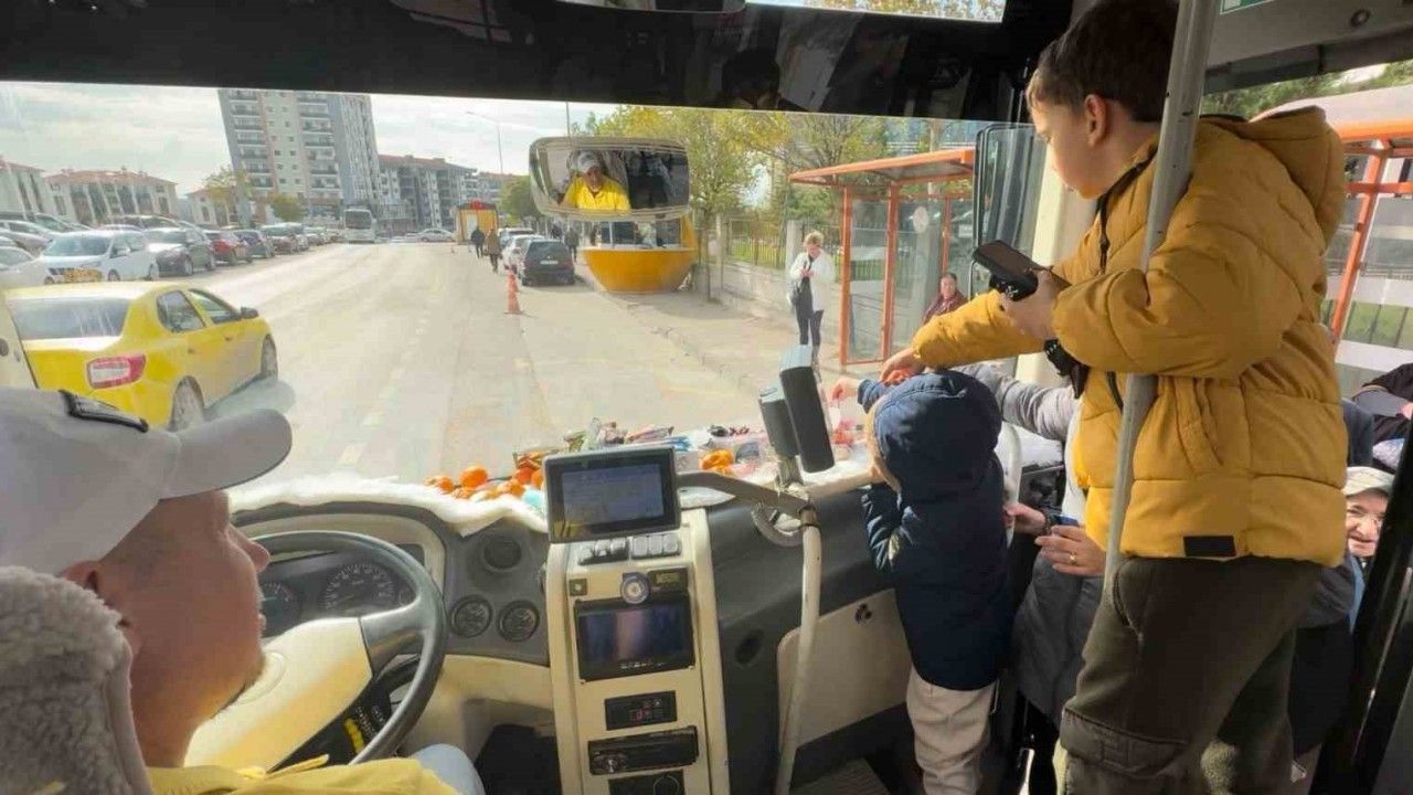 Edirne’de şehir içi ulaşımı sağlayan minibüs şoförü Mesut Coşkun, yolcularına çeşitli meyve ve şekerlemeler ikram etmesiyle dikkat çekiyor. Minibüsün ön kısmını adeta mini markete dönüştüren Coşkun, çocukların en sevdiği şoför olarak tanınmaya başladı.