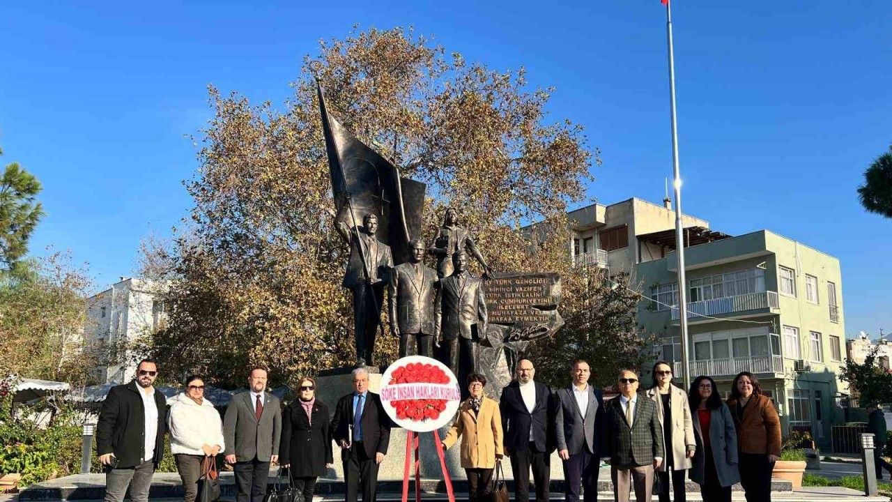 Aydın’ın Söke ilçesinde 10 Aralık İnsan Hakları Günü kapsamında Söke İlçe İnsan Hakları Kurulu tarafından Atatürk Anıtı’na çelenk sunulurken, program kapsamında kurul üyeleri ardından İlçe Emniyet Müdürlüğü ve İlçe Jandarma Komutanlığı’nı ziyaret etti.
