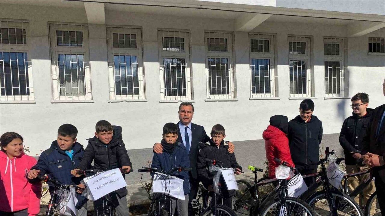 Konuşmanın ardından protokol üyelerince bisikletler öğrencilere takdim edildi.