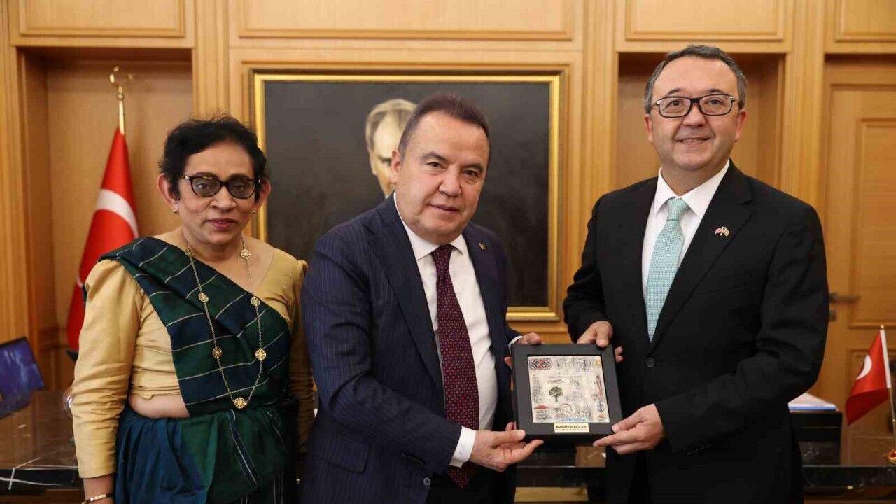 Antalya’nın tarım ve turizm potansiyeli hakkında Büyükelçi Dissanayake’ye bilgi veren Başkan Böcek, “Antalya’mız Türk turizmi ve tarımın başkenti diye anılır. Bir gecede 700 bin geceleme kapasitesi vardır. Ülkemizdeki Mavi Bayrak sayısının yarısı Antalya’mızdadır. 2022 yılında 13 milyon 400 bin turist ziyaret etti. Sayın Büyükelçimizin ve Sayın Konsolosumuzun sayesinde iki ülkenin ortak sektörleri olan turizm, tarım başta olmak üzere işbirliği içerisinde ticaret, sosyal ve kültürel anlamda iş birliği ve etkinlikler yapabiliriz” dedi.
