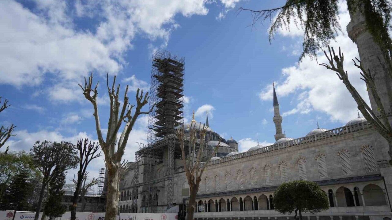Vakıflar İstanbul 1. Bölge Müdürlüğü Sanat Eserleri ve Yapı İşleri Şube Müdürü Feyyaz Fidan, "2018 yılında Kültür ve Turizm Bakanlığı Vakıflar Genel Müdürlüğü olarak Sultanahmet Camii’nde restorasyon çalışmalarına başladık. 2023 yılında restorasyonu tamamladık. Sayın Cumhurbaşkanımız tarafından yeniden ibadete açıldı. Restorasyon kapsamında öncelikle ibadet ve ziyaretin aksamaması adına Harim bölümüne 8 metre yüksekliğinde bin 200 metrekare genişliğinde bir platform kurduk. Restorasyon süresince hem ibadet edenler için hem de ziyaret edenler için bir engel teşkil etmedi. Sultanahmet Camii 6 minaresiyle ön plana çıkıyor. Meydana bakan 2 minarede 2’şer şerefe, diğer minarelerde ise 3’er şerefe bulunuyor. Dolayısıyla toplam 16 şerefe var. Sultan 1. Ahmet’in 16. Osmanlı padişahı olduğuna işaret ettiğine ilişkin bazı bilgiler bulunmaktadır. Minarelerin sökümü bizim için önem arz eden husus. Minareleri sökerken aslında yapım tekniğini görüyoruz. Sökerken tek tek taşları numaralandırarak sökümü gerçekleştiriyoruz. Sonra yere indiriyoruz. Bundan sonra hem taşların hem de şerefe korkuluklarının konservasyonları yapılıyor. Bozulma düzeyleri hem fotoğraflanıyor hem belgeleniyor hem de antik röleve olarak çiziliyor. Konservasyon yapılabilenler yapılıyor, yapılamayacak olanlar ise özgün malzeme ve tekniklerine göre yenileniyor. Bundan sonra da minare özgün tekniğinde olduğu gibi kenetle, zıvanayla örümü gerçekleştiriliyor" ifadelerini kullandı.