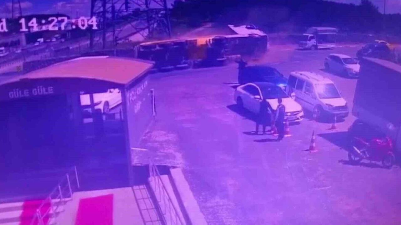Sultanbeyli’de virajı dönerken kontrolden çıkan moloz yüklü hafriyat kamyonu, trafik ışıklarında beklemekte olan bir otomobilin üzerine devrildi. Kazada şans eseri iki sürücü de yaralanmadı. Kaza anı güvenlik kamerasına yansıdı.