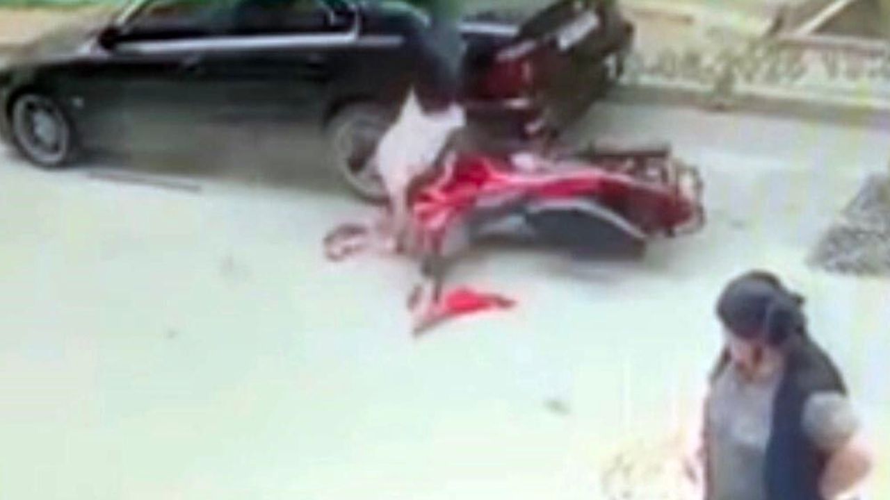 Sultangazi’de motosiklet sürücüsü, seyir halindeyken park halindeki bir otomobile çarptı. Çarpmanın etkisiyle sürücü savrularak yere düşerken, o anlar güvenlik kamerasına yansıdı.