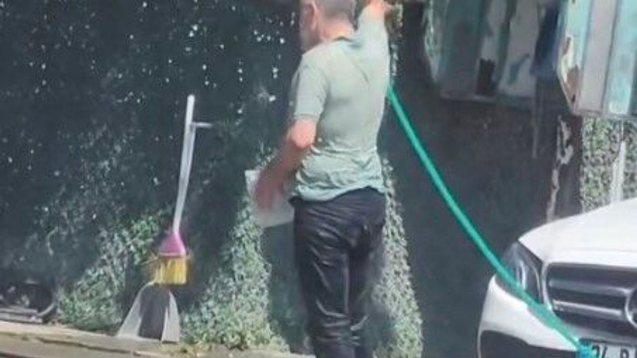 Sultangazi’de sıcaktan bunalan bir vatandaş hortumla hem kendini hem de aracını yıkadı. Vatandaşın serinlemek için hortumla yıkandığı anlar ise cep telefonu kamerasına yansıdı.
