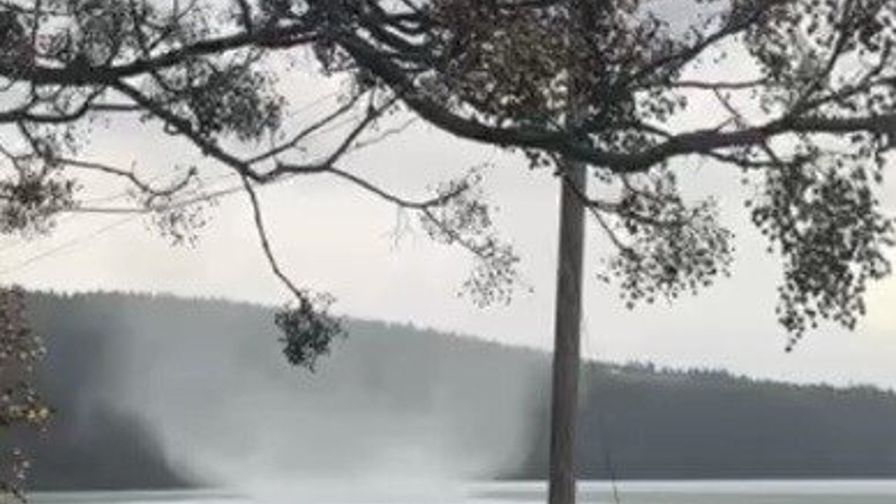 Osmaniye'nin Sumbas ilçesinde bulunan Mehmetli Barajı üzerinde oluşan hortum, cep telefonu kamerasına yansıdı.