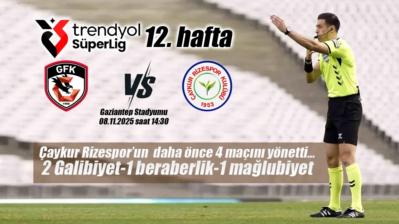 Buna göre Cumartesi günü Gaziantep Stadında saat 14:30'da oynanacak olan Gaziantep FK Çaykur Rizespor karşılaşmasını Oğuzhan Çakır yönetecek. Çakır'ın yardımcılıklarını ise Bahtiyar Birinci ve Özcan Sultanoğlu yapacak. Oğuzhan Çakır yeşil mavili ekibin geçen sezon 4 maçında görev yaptı.
