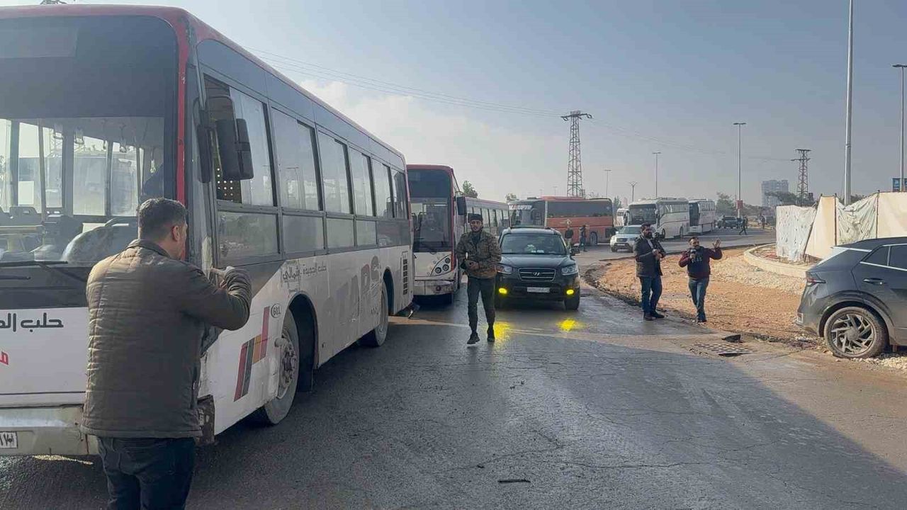 Suriye ordusunun terör örgütü PKK/YPG'nin Suriye uzantısı SDG'ye yönelik operasyonu kapsamında ilan edilen ateşkesin ardından Şeyh Maksud Mahallesine gelen 20 otobüs, Elleyremun bölgesinde teslim olan SDG'li teröristleri alarak farklı bölgelere götürecek.