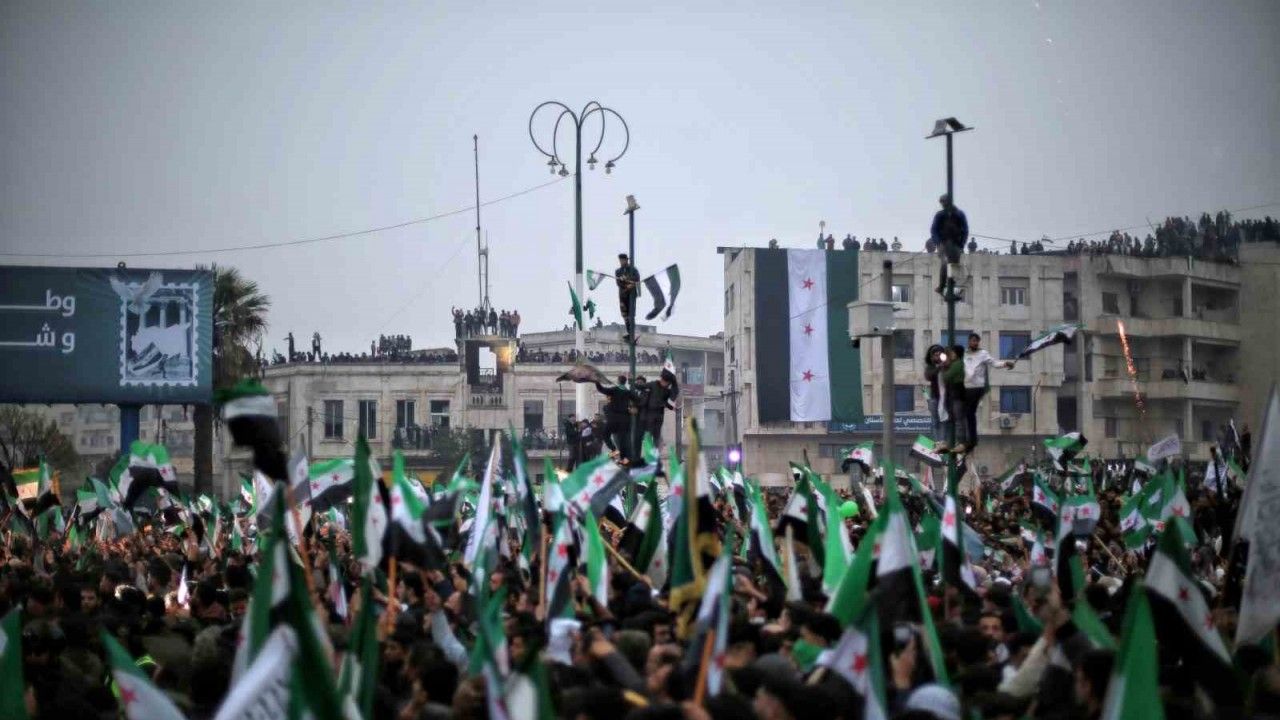 Suriyeliler, Esad rejiminin devrilmesinin 1’inci yıl dönümünü başkent Şam’daki Emevi Meydanı’nda kutladı.