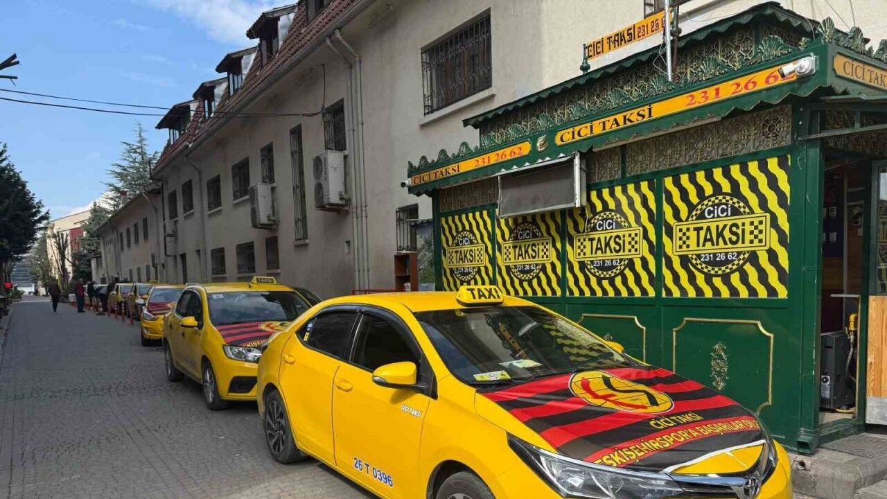 Eskişehir’de taksi şoförleri, Eskişehirspor’un kritik bir karşılaşmaya çıkacağı maç gününde araçlarını siyah-kırmızılı bayraklarla süsledi.