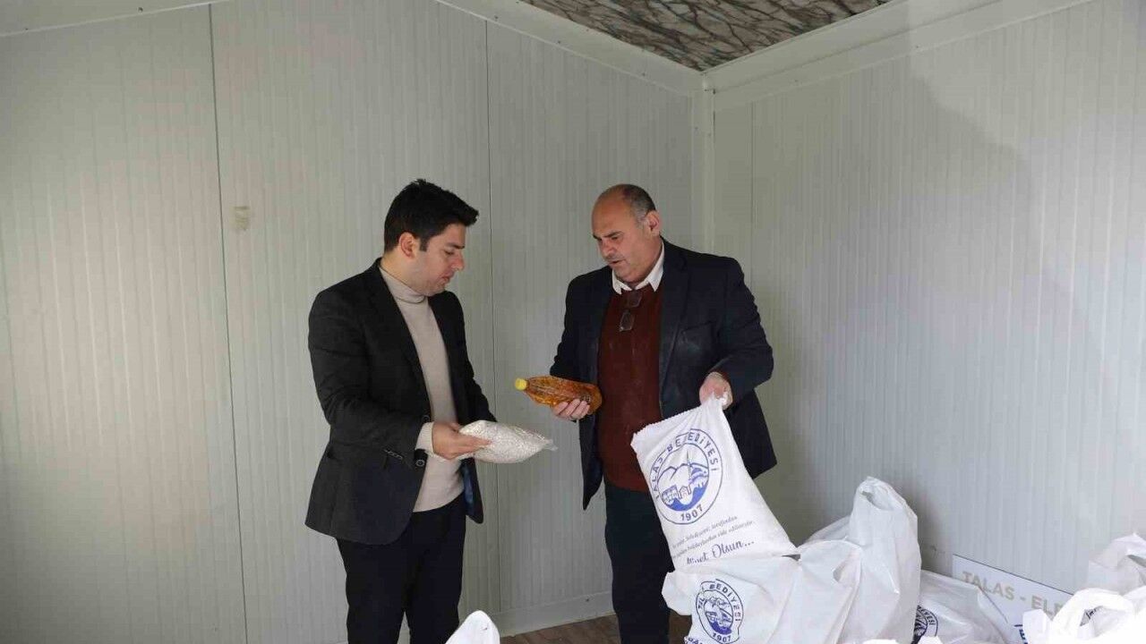Elbistan’daki deprem mağdurlarına destek olmaya devam eden Talas Belediyesi, kendi yetiştirdiği tarımsal ürünlerden oluşan gıda paketini Talas Kent Yaşam Alanı’nda kalan 210 depremzede aileye ulaştırdı.