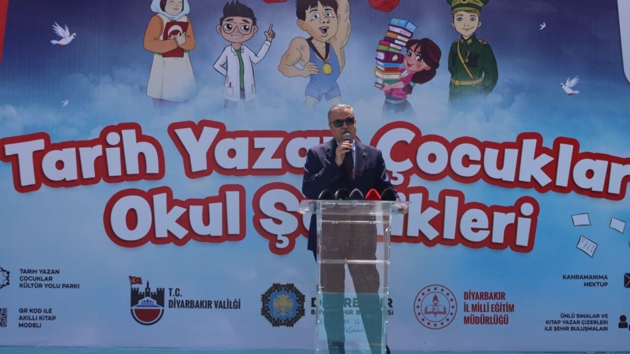 Geleceğini bilen gelecekten feyz alan nesiller yetişeceğini söyleyen Diyarbakır Milli Eğitim Müdürü Murat Küçükali, "Çocuklarımızın milli manevi değerlerimize bağlı ve geleceğimizi bilen ve gelecekten feyz alan nesiller olarak yetişmesini sağlamayı hedefliyoruz. Bu bizim en büyük idealimizdir. Atalarımızın ne büyük işler başardığını göreceksiniz sizlerde büyük ve güzel işler başaracağız diyeceksiniz. 2053 ve 2071’in tarihini yazacaksınız" şeklinde konuştu.