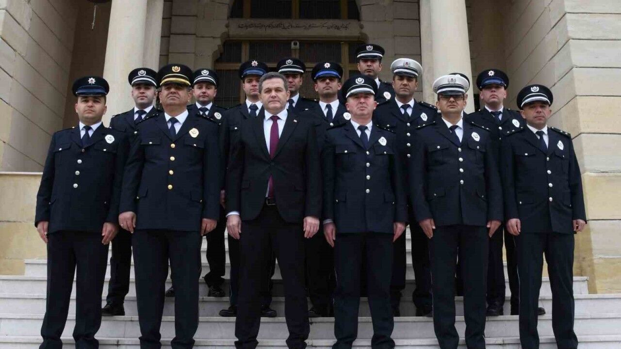 Kastamonu İl Emniyet Müdürü Kayhan Ay ve personeli, tarihi Kastamonu Valiliği binası önünde 88 yıl önce çekilen fotoğraftaki aynı pozu vererek fotoğraf çektirdi.