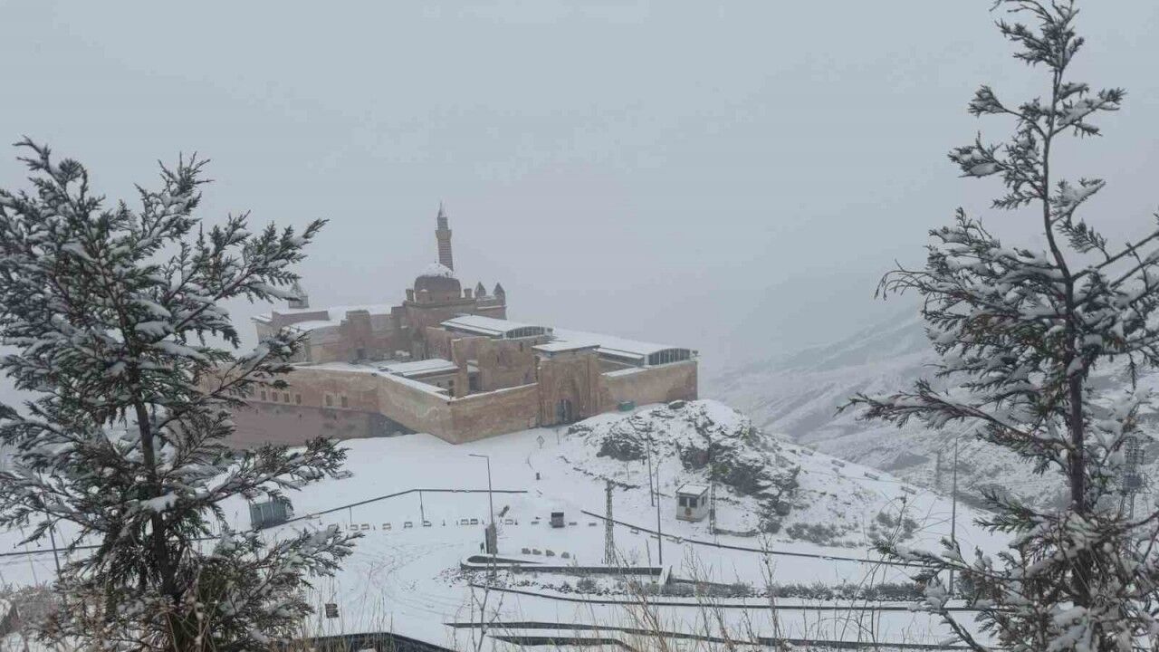 Doğu Anadolu Bölgesi’nin incisi tarihi İshak Paşa Sarayı beyaza büründü.