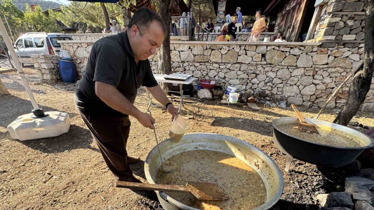 Antalya’nın Akseki ilçesindeki 800 yıllık tarihi ve düğmeli evleri ile dikkat çeken Sarıhacılar Mahallesi’nde kazanlar aşure için kaynadı.