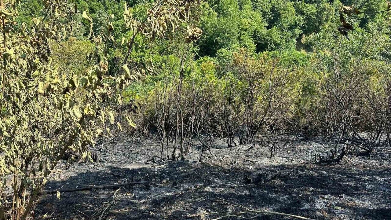 Zonguldak’ın Alaplı ilçesinde tarla temizliğinden çıktığı değerlendirilen yangında, bir dönüm ormanlık alan zarar gördü.