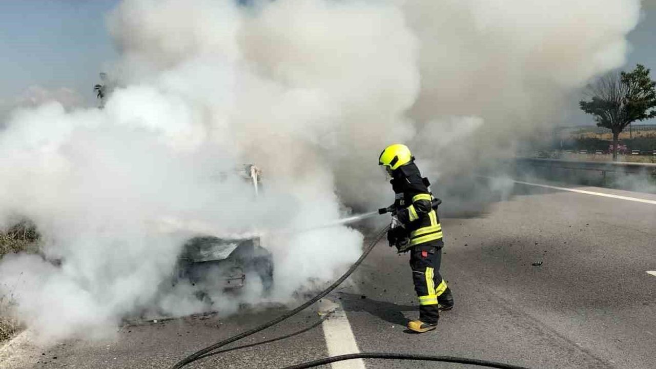 Mersin’de otoyolda seyir halindeki bir otomobil yandı.