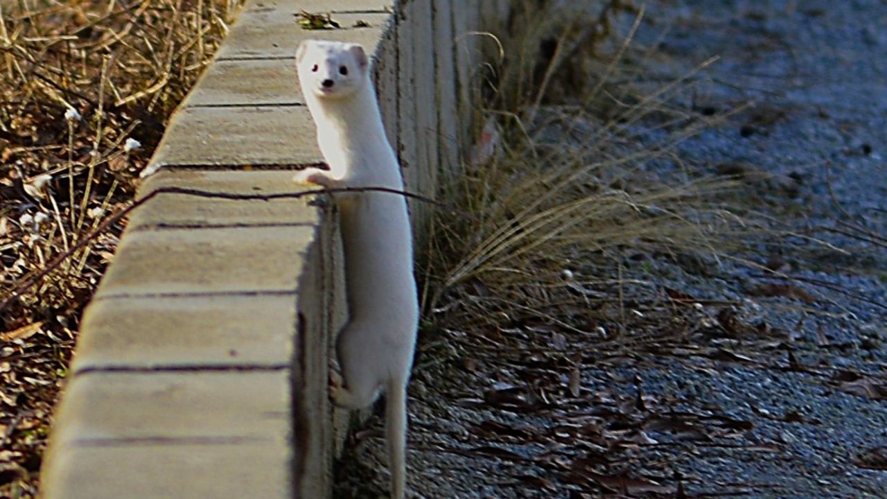 Bitlis'in Tatvan ilçesinde nadir görülen hayvan türlerinden biri olan beyaz gelincik, Van Gölü sahilinde görüntülendi.
