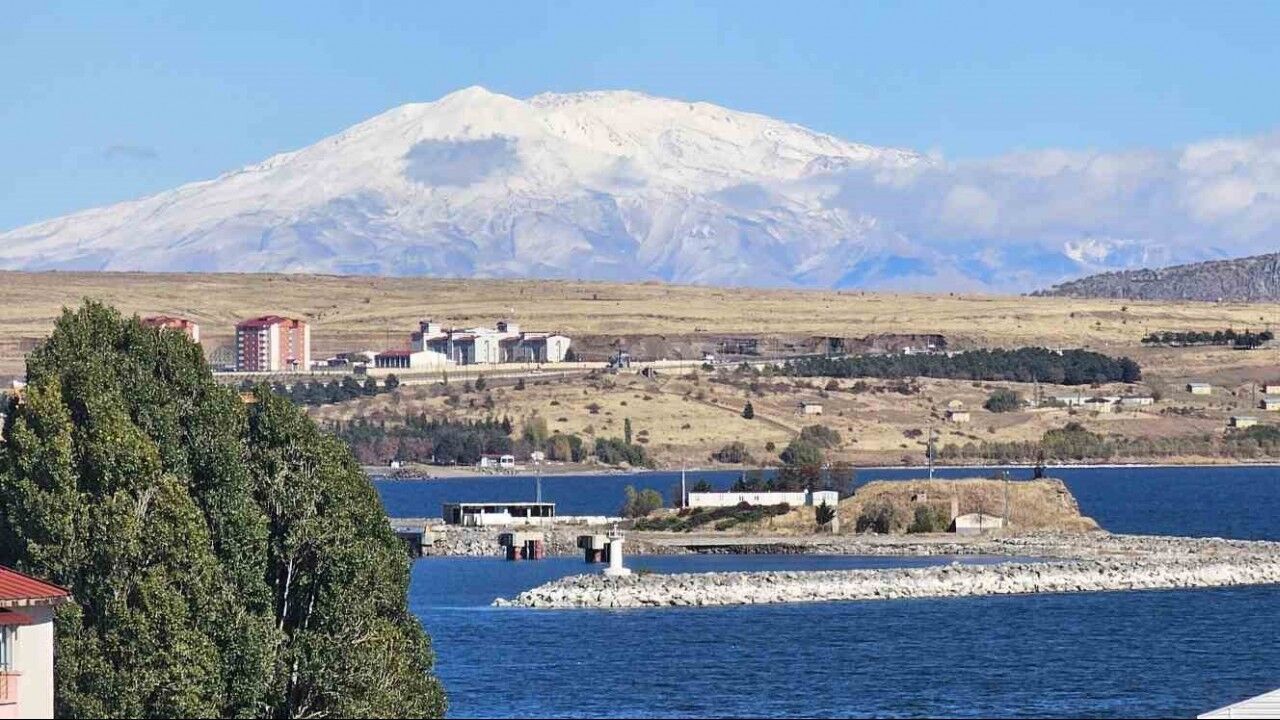 Bitlis’in Tatvan ilçesinin yüksek kesimleri yağan karla beyaza büründü.