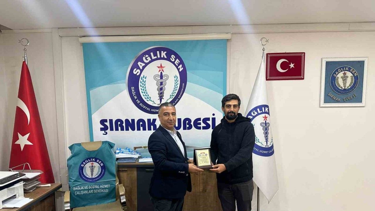 Şırnak’ta 7 yılı aşkın süredir görev yapan Sağlık-Sen işyeri temsilcisi Halil İbrahim Sülü, Mersin’e tayin olması dolayısıyla teşekkür plaketi verildi.