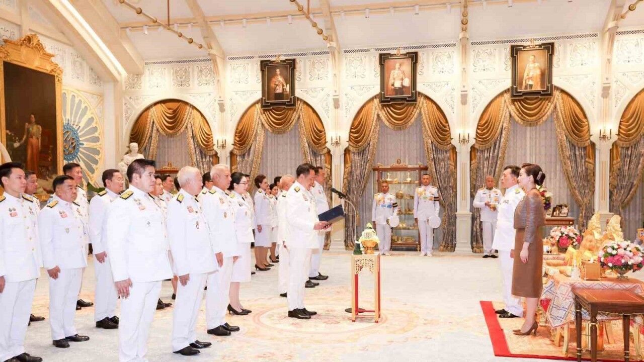 Tayland’da yeni hükümet törende Kral Vajiralongkorn ve Kraliçe Suthida’nın huzuruna çıktı. Başkent Bangkok’taki Dusit Sarayı’nda Çarşamba günü düzenlenen törende, başbakan ve aynı zamanda içişleri bakanı olarak görev yapacak olan Anutin Charnvirakul ile beraberindeki 36 üyeden oluşan kabine üyeleri, Kral Vajiralongkorn ve Kraliçe Suthida’nın huzurunda yemin ederek göreve başladı. Tayland geleneklerine uygun olarak gerçekleşen törende tüm kabine üyeleri, yere kapanarak Kral ve Kraliçe için saygı duruşunda bulundu.