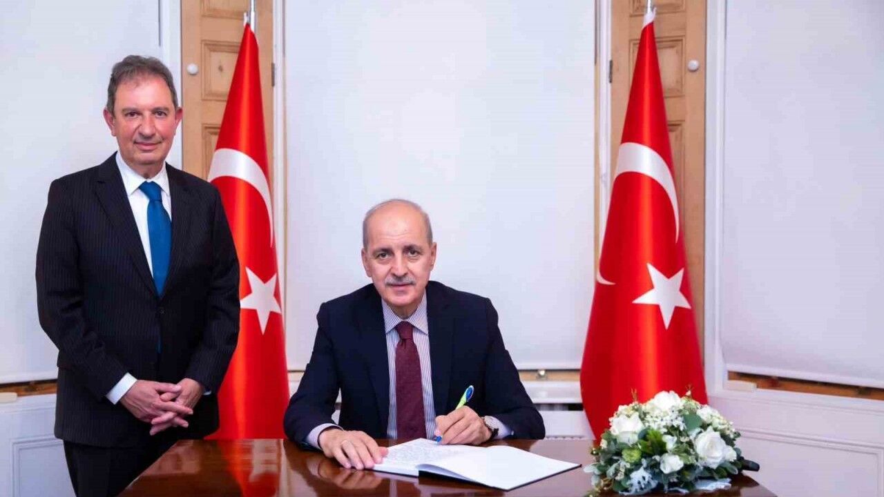 TBMM Başkanı Numan Kurtulmuş, Avrupa Parlamento Başkanları Konferansı’na katılmak üzere İrlanda’nın başkenti Dublin’e geldi. Kurtulmuş’u Dublin Havalimanı’nda Türkiye’nin Dublin Büyükelçisi Mehmet Hakan Olcay ve diğer ilgililer karşıladı. Dublin Büyükelçiliği’ni ziyaret ederek Büyükelçi Olcay’dan çalışmalar hakkında bilgi alan TBMM Başkanı Kurtulmuş, büyükelçilik şeref defterini imzaladı.