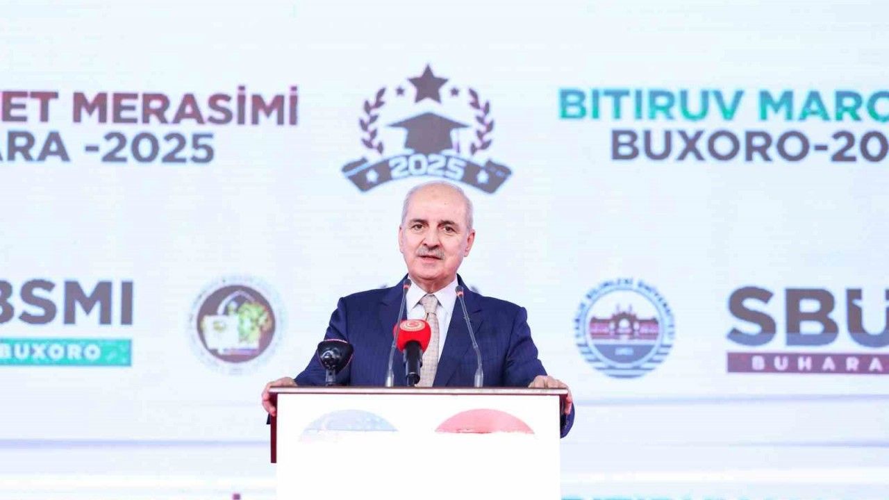 TBMM Başkanı Numan Kurtulmuş, resmi temaslarda bulunmak üzere geldiği Özbekistan’ın Buhara kentinde, Sağlık Bilimleri Üniversitesi Ebu Ali İbn Sina Buhara Devlet Tıp Enstitüsü ve Sağlık Hizmetleri Meslek Yüksekokulu Mezuniyet Töreni’ne katıldı. Buhara Uluslararası Spor Tesisleri’nde düzenlenen programda konuşan Kurtulmuş, ata yurdu Özbekistan’da bulunmanın kendileri için fevkalade önemli ve değerli olduğunu, Sağlık Bilimleri Üniversitesi Ebu Ali İbn Sina Buhara Devlet Tıp Enstitüsü ve Sağlık Hizmetleri Meslek Yüksekokulu Mezuniyet Töreni’ne katılmaktan memnuniyet duyduğunu ifade etti. Özbekistan’da böylesine önemli bir projenin meyvesini verdiğini görmenin de anlamlı olduğunu söyleyen Kurtulmuş, mezun öğrencileri tebrik ederek, başarılar diledi. Özbekistan’ın büyük İslam medeniyetinin önemli merkezlerinden birisi olduğunu dile getiren Kurtulmuş, Özbekistan ve Türkiye’nin birbiriyle kardeş, dost ve mesafeler uzak olsa da kalp kalbe, el ele olan iki millet olduğunu belirtti.