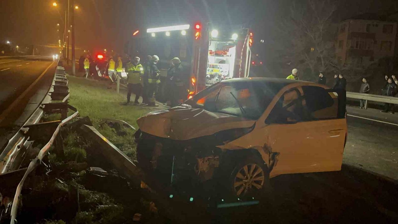 Tekirdağ'ın Ergene ilçesinde alkollü sürücünün kullandığı otomobil, bariyerlere ve aydınlatma direğine çarptı.