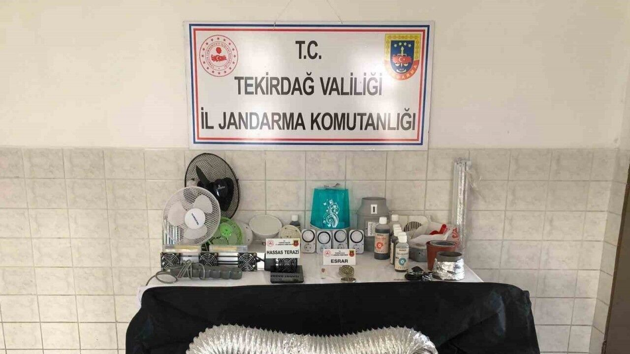 Çorlu Reşadiye Mahallesi’nde bir ikamette yapılan operasyonda 2 gram esrar, 2 gram kenevir tohumu, 1 adet hassas terazi, 2 adet havalandırma fanı, 1 adet esrar öğütme aparatı, 2 adet 2x2 iklimlendirme çadırı, 3 adet vantilatör, 3 adet aydınlatma lambası, 10 litre bitki besleyici gübre, 2 adet 3 metrelik seyyar kablo, 1 adet havalandırma borusu ve filtresi, 3 adet zaman ayarlı priz, 11 adet plastik saksı ve 1 adet nemlendirme cihazı ele geçirildi.
