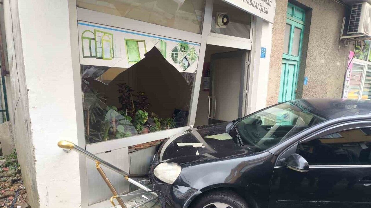 Tekirdağ’ın Muratlı ilçesinde meydana gelen trafik kazasında bir otomobil, sürücüsünün kontrolünden çıkarak dükkana girdi.