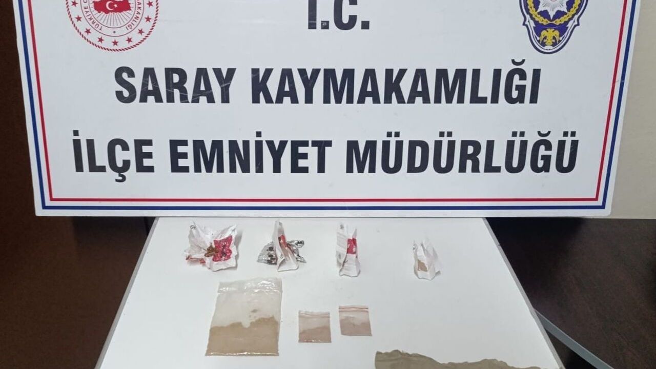 Saray ilçesinde uyuşturucu madde imal ve ticareti yapan şahısların yakalanması, deşifre edilmesine yönelik yapılan çalışmalar çerçevesinde, İlçe Emniyet Müdürlüğü Asayiş Büro ekipleri, Ö.L. isimli şüphelinin uyuşturucu madde kullandığı ve ticaretini yaptığı bilgisine ulaştılar. Harekete geçen ekipler Ö.L. isimli şüphelinin evinde gerçekleştirdikleri aramalarda 19 gram eroin olduğu değerlendirilen uyuşturucu ve uyarıcı madde, 3 parça halinde yaklaşık 600 içimlik uyuşturucu madde emdirilmiş peçete, 2 gram bonzai olduğu değerlendirilen uyuşturucu ve uyarıcı madde ele geçirdi.