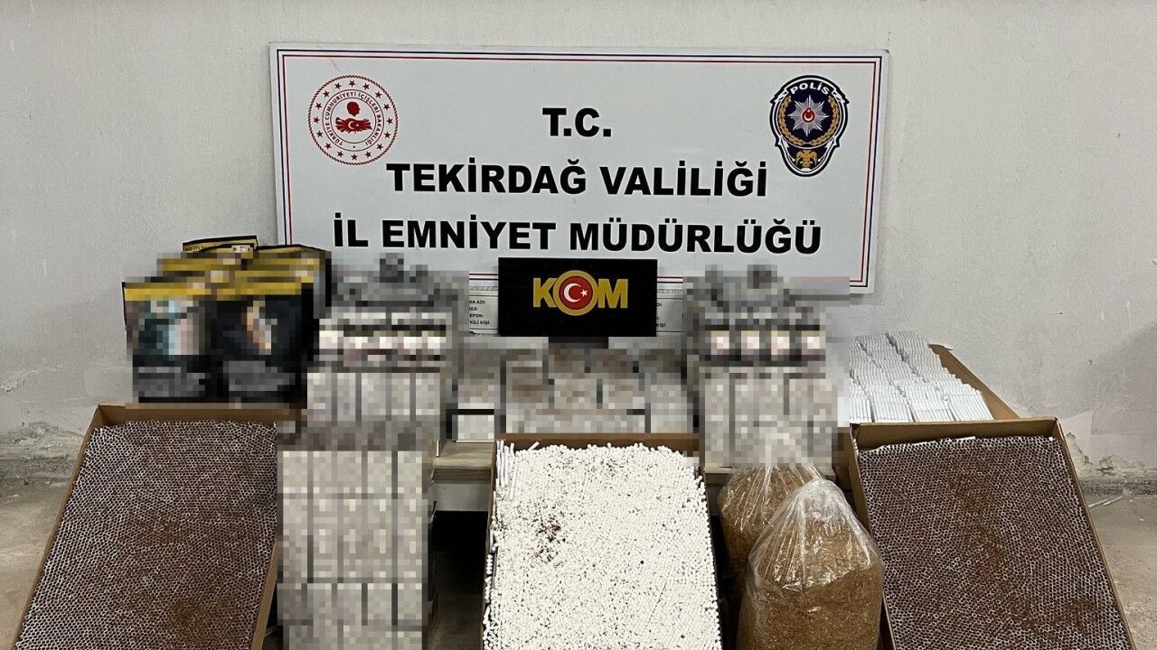 Tekirdağ İl Emniyet Müdürlüğü ekipleri, kaçak tütün ve makaron ticaretine yönelik yürüttüğü çalışmalar kapsamında Süleymanpaşa ve Muratlı ilçelerinde eş zamanlı operasyon gerçekleştirdi. Operasyonlarda toplam 8 şüpheli şahıs yakalanarak gözaltına alındı. Adreslerde yapılan aramalarda; 356 bin 490 adet dolu ve boş makaron, 14 adet sigara sarma makinası, 53 kilogram açık kıyılmış tütün, 87 adet mükerrer TAPDK bandrolü ve 1 ruhsatsız tabanca ele geçirildi. Şüpheliler hakkında 5607 sayılı Kaçakçılıkla Mücadele Kanunu kapsamında yasal işlem başlatıldı. Gözaltına alınan 8 kişiden 2’si, çıkarıldıkları adli makamlarca tutuklanarak cezaevine gönderildi. Yetkililer, tütün mamulleri kaçakçılığına karşı mücadelenin kararlılıkla sürdürüleceğini vurguladı.