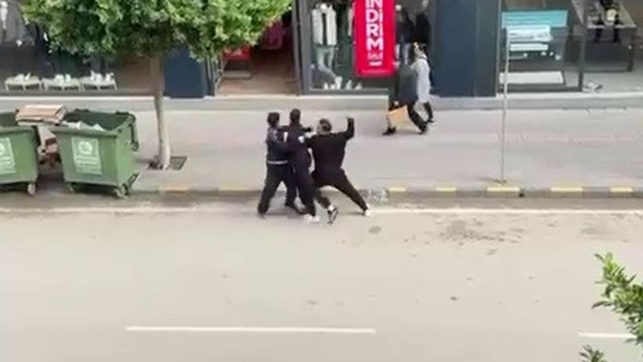 Hatay'da kargo dağıtıcısı ile vatandaş arasında çıkan 'telefonumun ekranına baktın' tartışması kısa sürede kavgaya dönüşürken, sokağın boks ringini andırdığı anlar kameraya yansıdı.