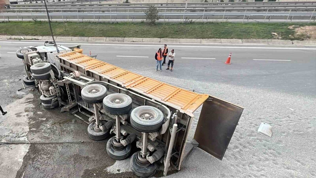 TEM Otoyolu’nun Kocaeli geçişinde kontrolden çıkan mıcır yüklü kamyon devrildi. Sürücü yaralanırken, kapanan yol aracın kaldırılması ile açıldı.