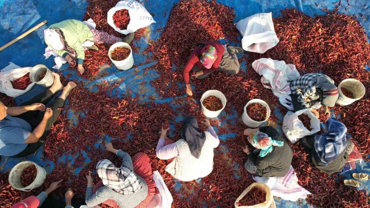 Çalışan Ali İnce ise, “Biz yevmiye ile çalışmaya geldik çocuklarımızın rızkı için. Biberleri ayırıyoruz kurusunu, kötüsünü ve yaş olanları ayırıyoruz. Karışık, acı ve tatlı biberler ortaya çıkıyor” diye konuştu.