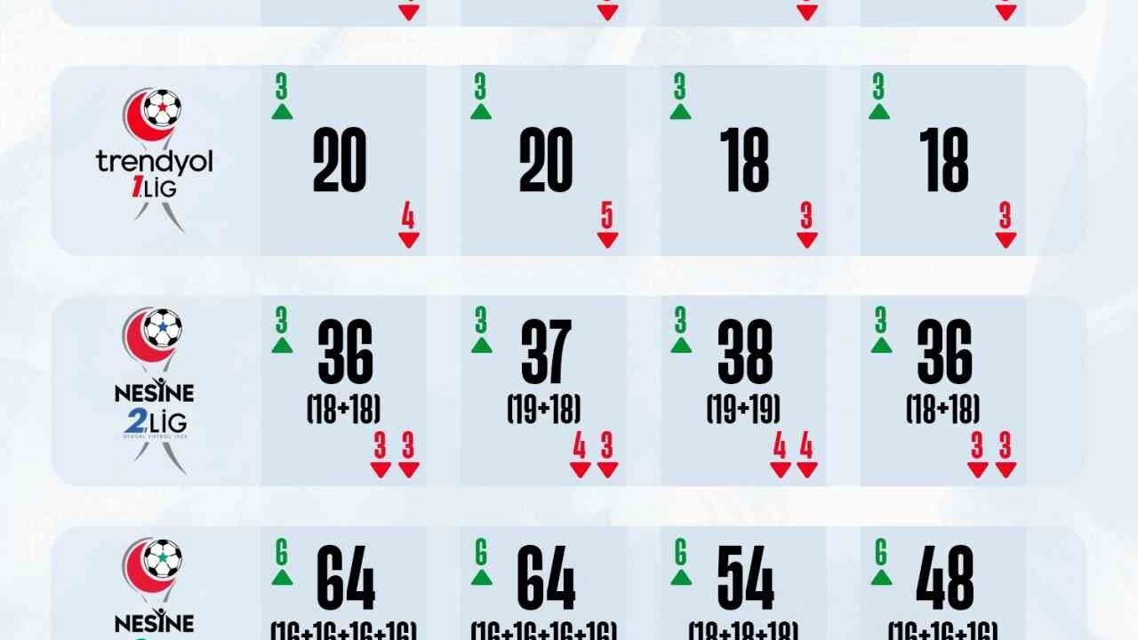 2020-2021 sezonunda 21 takımla oynanan Süper Lig başta olmak üzere, tüm liglerde kademeli olarak takım sayısının düşürülmesi hedeflense de 2023’teki deprem felaketinden etkilenen kulüplerin ligden çekilme talepleri sebebiyle hedeflenen sayıya ulaşılamadı.