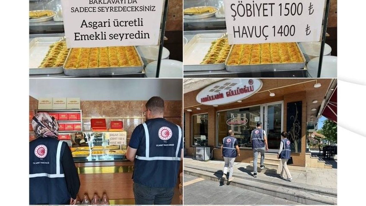 Ticaret Bakan Yardımcısı Mahmut Gürcan, sosyal medya hesabından yaptığı paylaşımda, 21 Temmuz tarihinde sosyal medya platformunda paylaşılan ve üzerinde "Siz bu sisteme oy verdiğiniz sürece eti de, sütü de, baklavayı da sadece seyredeceksiniz. Asgari ücretli, emekli seyredin" ifadelerinin yer aldığı tatlı tezgâhı görseliyle ilgili olarak, "Ticaret Bakanlığımıza bağlı İl Müdürlüğümüzce derhal inceleme başlatılmıştır" dedi.
