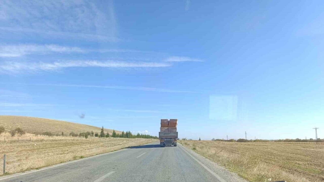 Afyonkarahisar’da bir tır sürücüsünün gerektiği şekilde önlem almadan dorsesinde taşıdığı tuğlaları yola düşürerek ilerlediği anlar cep telefonu kamerasıyla görüntülendi.