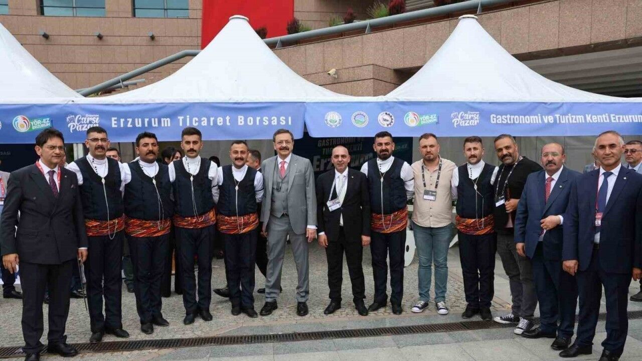 TOBB Başkanı Rifat Hisarcıklıoğlu da Erzurum Ticaret Borsası standını ziyaret ederek, ikram edilen yöresel lezzetleri tattı. Hisarcıklıoğlu, Erzurum’un gastronomi alanındaki zenginliğine dikkat çekerek emeği geçenleri tebrik etti. Erzurum Ticaret Borsası’nın yöresel ürünlerin tanıtımı konusunda sergilediği başarılı organizasyondan övgüyle bahseden Hisarcıklıoğlu, Erzurum’un kültürel mirasına sahip çıkan bu vizyoner yaklaşımın tüm illere örnek teşkil ettiğini ifade etti. Erzurum Ticaret Borsası’nın stand düzenlemesi, ürün çeşitliliği ve misafirperverliğinin takdire şayan olduğunu belirterek, Erzurum’un hem ekonomik hem kültürel anlamda değer üreten şehirler arasında özel bir yere sahip olduğunu vurguladı.