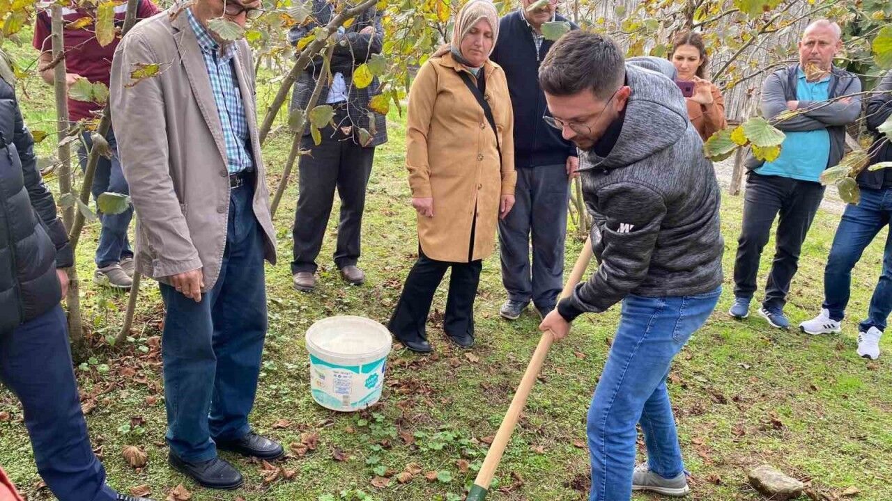 DÜZCE(İHA) –Gölyaka ilçe Tarım ve Orman Müdürlüğü ekipleri fındık üretimi yapan çiftçilere toprak tahlili için toprak numunesinin nasıl alınacağını uygulamalı olarak gösterildi.