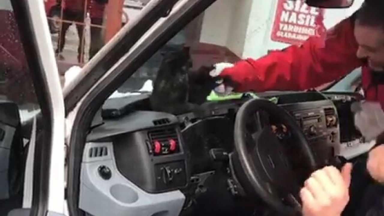 Kedi sesini duyunca ne yapacağını şaşırdığını söyleyen Abdurrahman Sayın “Arabayı çalıştırdığımda kedi sesi gelmeye başladı. Aracı durdurup dinlediğimde torpidodan geldiğini farkettim. Kaçırmaya çalışsam da sonuç alamadım. Aracı İtfaiye Müdürlüğü’ne getirdim. Arkadaşlar sağolsun bayağı uğraştılar, her yeri söktüler. Sonunda kediyi çıkarmayı başardılar” dedi