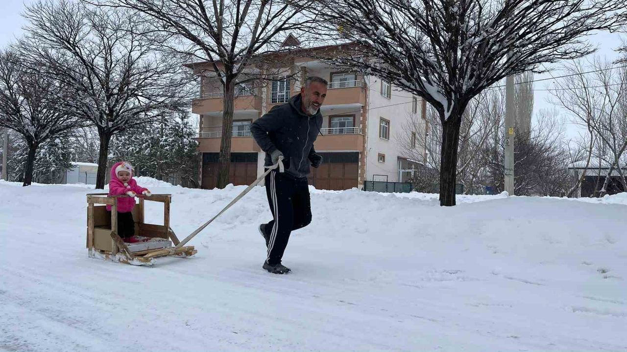 Kış mevsiminin sert geçtiği Kahramanmaraş'ın Afşin ilçesinde farklı bir yöntemle hazırlıklarını sürdüren maraton sporcusu Ali Ayar, bu kez torunu için yaptığı kar kızağını çekerek koştu. Hem antrenman yapan hem de torunuyla keyifli vakit geçiren sporcu, sporun her yaşta ve her şartta yapılabileceğini gösterdi.