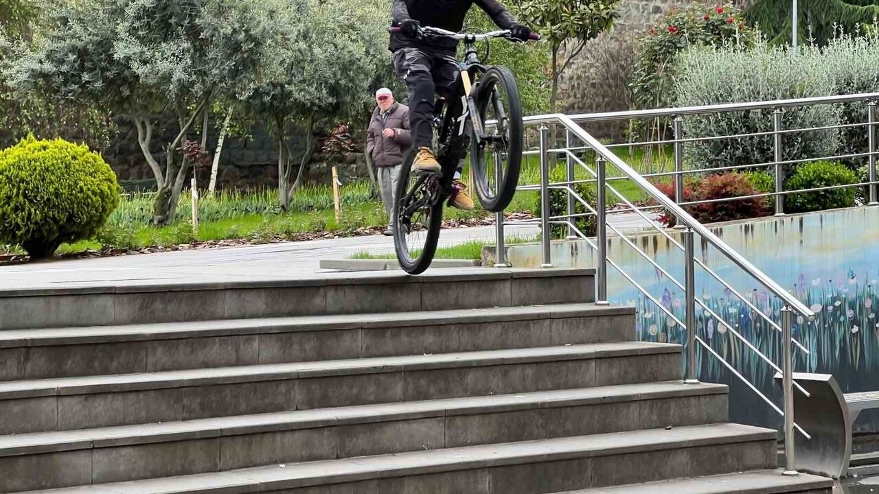 Trabzonlu genç yetenek Samet Demirbaş, kendi tasarladığı bisikletiyle dik merdivenlerden inişleriyle dikkat çekiyor. Dik merdivenlerden atlayarak adrenalin dolu gösteriler yapan Demirbaş, kısa sürede binlerce takipçiye ulaştı.