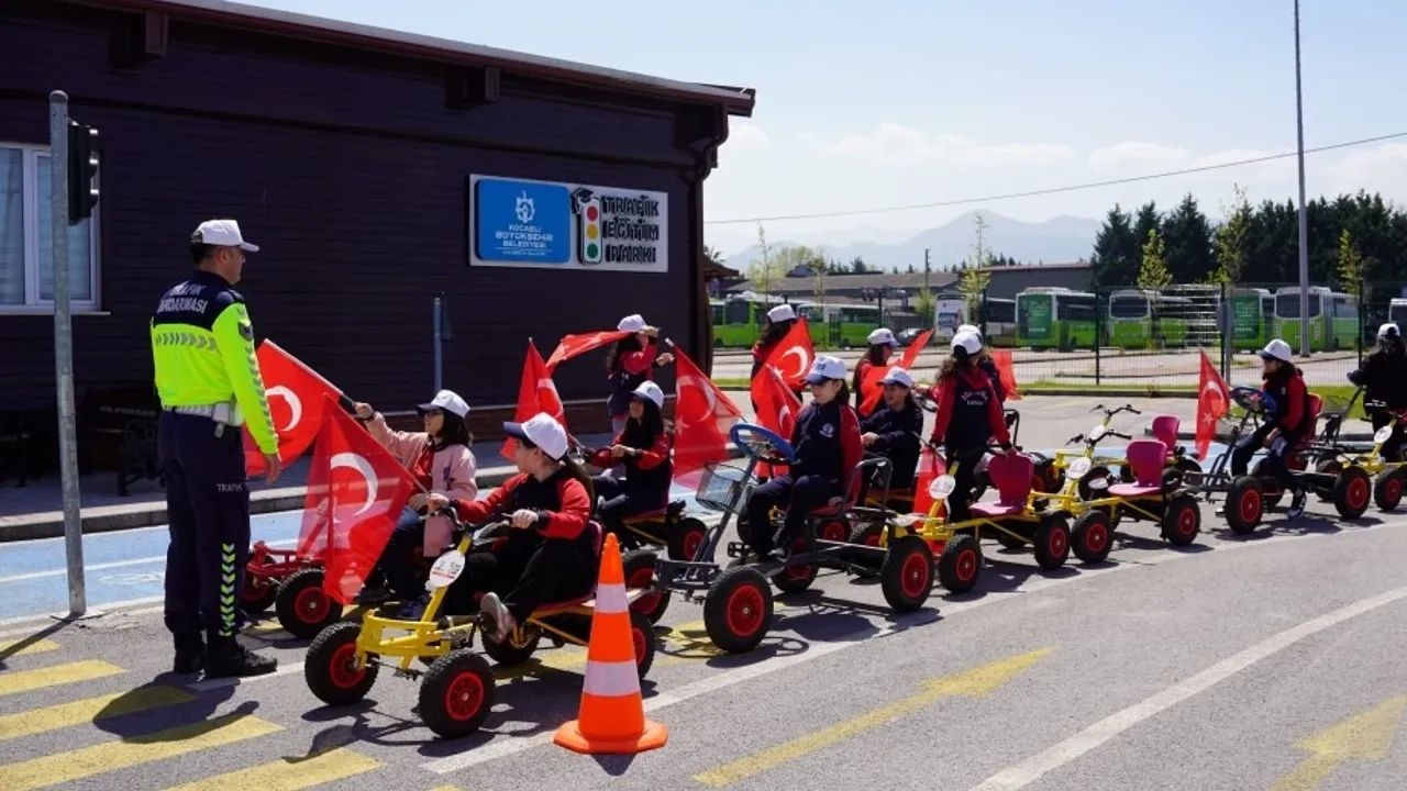 Kocaeli Büyükşehir Belediyesi tarafından kente kazandırılan ve Marmara bölgesinin en büyük Trafik Eğitim Parkı olma özelliği taşıyan merkez, çocuklara trafik bilincini kazandırmak amacıyla eğitim faaliyetlerine devam ediyor. Eğitimler 23 Nisan Ulusal Egemenlik ve Çocuk Bayramı’nda da devam etti. Bu kapsamda çocuklar, Kocaeli İl Emniyet Müdürlüğü ve Kocaeli İl Jandarma Komutanlığı’nda görevli eğitmen personeller tarafında teorik ve parkur eğitimi aldı.