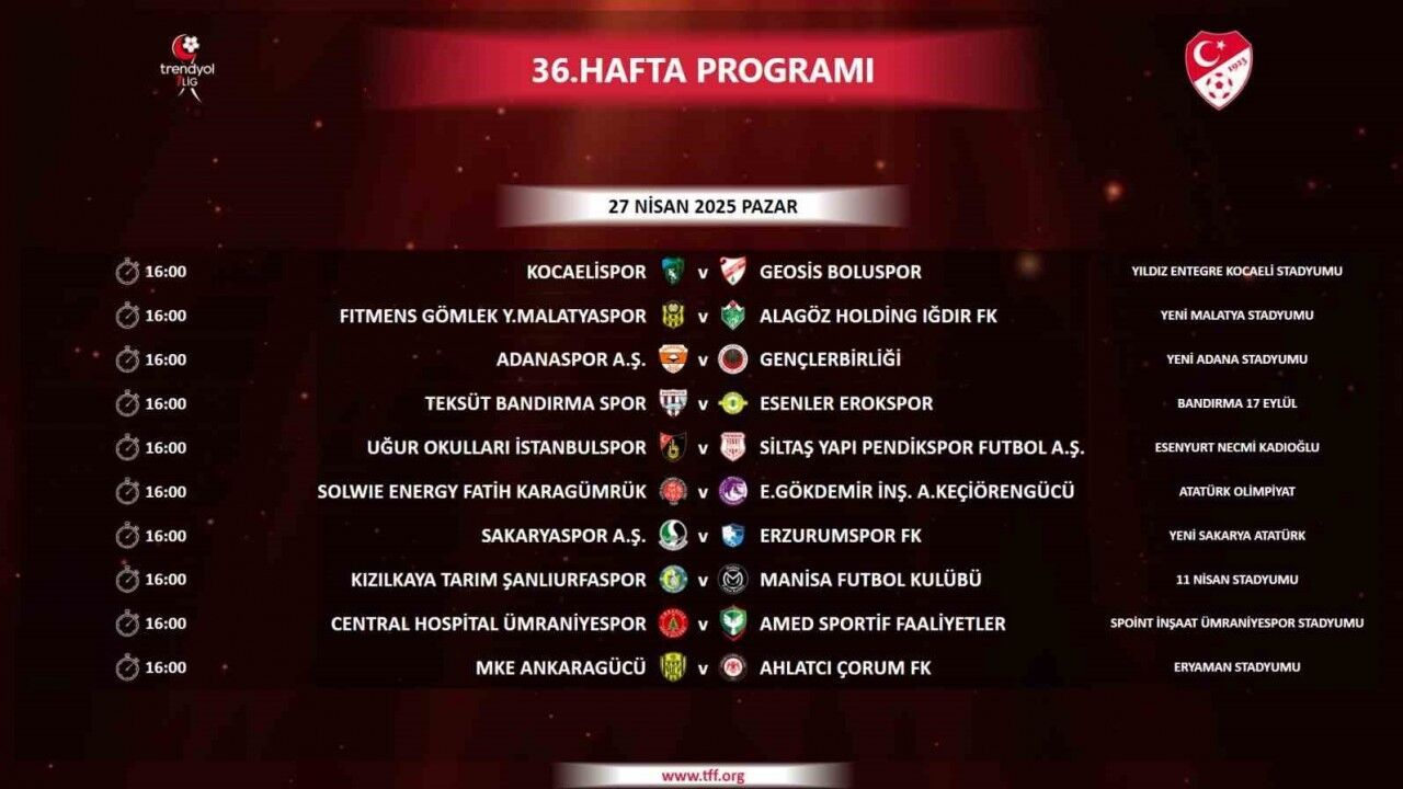 Trendyol 1. Lig’de 36. haftanın programı şöyle: