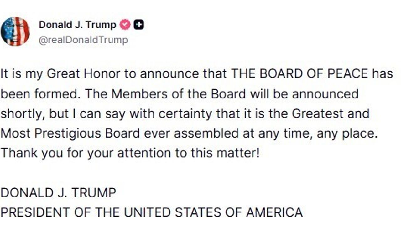ABD Başkanı Donald Trump, Gazze Barış Kurulu'nun oluşturulduğunu ve 20 maddelik Gazze Barış Planı'nın bir sonraki aşamasına resmen geçildiğini belirterek, 'Mısır, Türkiye ve Katar'ın desteğiyle tüm silahların teslim edilmesini ve her bir tünelin imha edilmesini içeren kapsamlı bir silahsızlanma anlaşmasını Hamas ile güvence altına alacağız' açıklamasında bulundu.