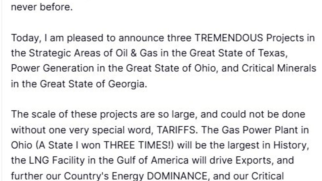 Japonya'nın bu kapsamda ABD'nin 3 farklı bölgesine yatırım yapacağı bilgisini paylaşan Trump, 'Teksas eyaletinde stratejik petrol ve doğalgaz alanlarında, Ohio eyaletinde enerji üretimi alanında ve Georgia eyaletinde kritik mineraller alanında hayata geçirilecek 3 muhteşem projeyi duyurmaktan mutluluk duyuyorum' ifadelerini kullandı.