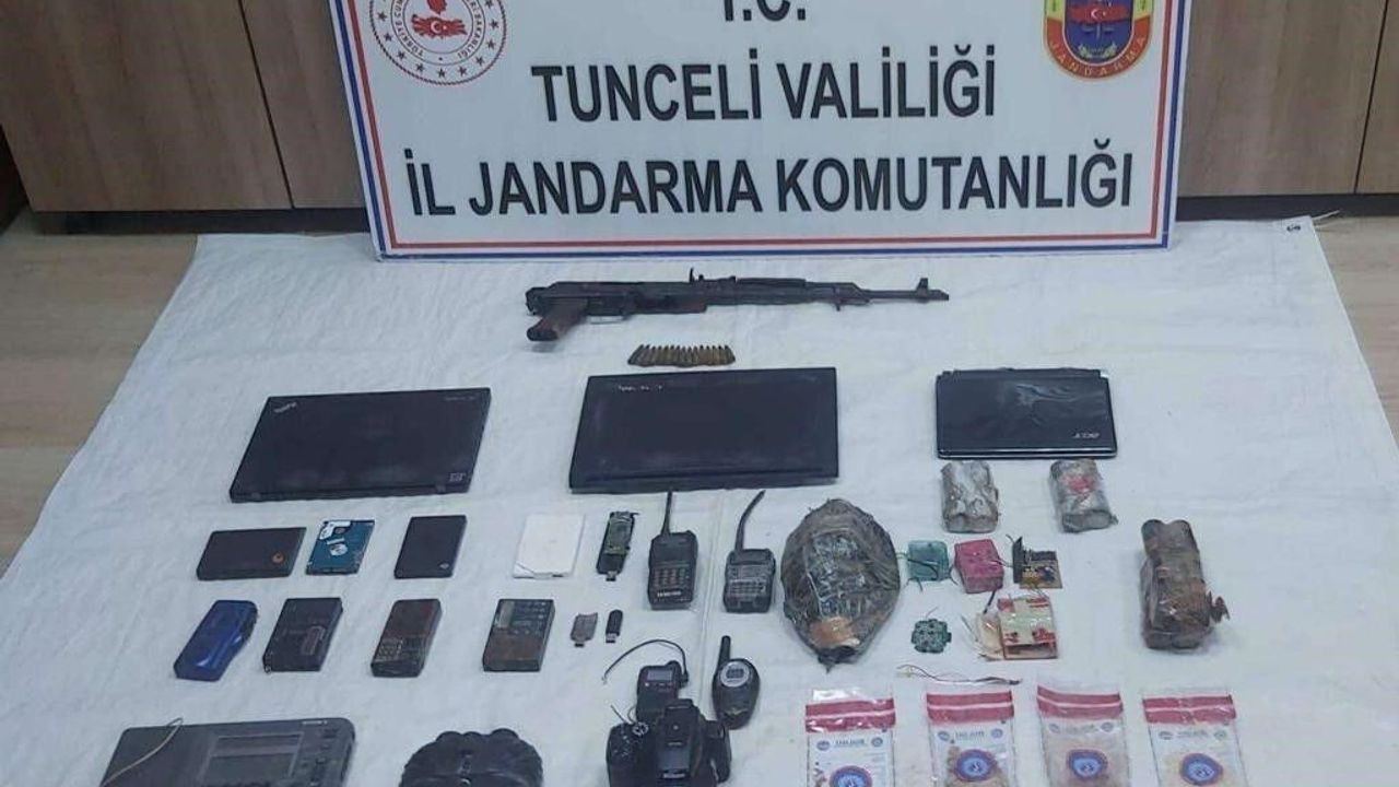 Tunceli Valiliği’nden yapılan açıklamada, "Tunceli İl Jandarma Komutanlığı tarafından Hozat ilçesi kırsalında gerçekleştirilen operasyonlarda 4 sığınak içerisinde 1 adet Kalaşnikof piyade tüfeği, 150 adet Kalaşnikof fişeği, 4 adet EYP düzeneği, tüp içerisinde hazırlanmış 40 kilogram patlayıcı, 4 adet el telsizi, 2 adet jeneratör, 3 adet dizüstü bilgisayar, 7 adet harddisk, 27 adet tüp, 3 adet güneş paneli, 3 adet el dürbünü, 5 adet akü, 1 adet hilti, 1 adet termal şemsiye, 20 litre mazot, 1 adet fotoğraf makinesi, 4 adet radyo, 3 adet ses kayıt cihazı, çok miktarda yaşamsal malzeme ve örgütsel doküman ele geçirilmiştir” denildi.