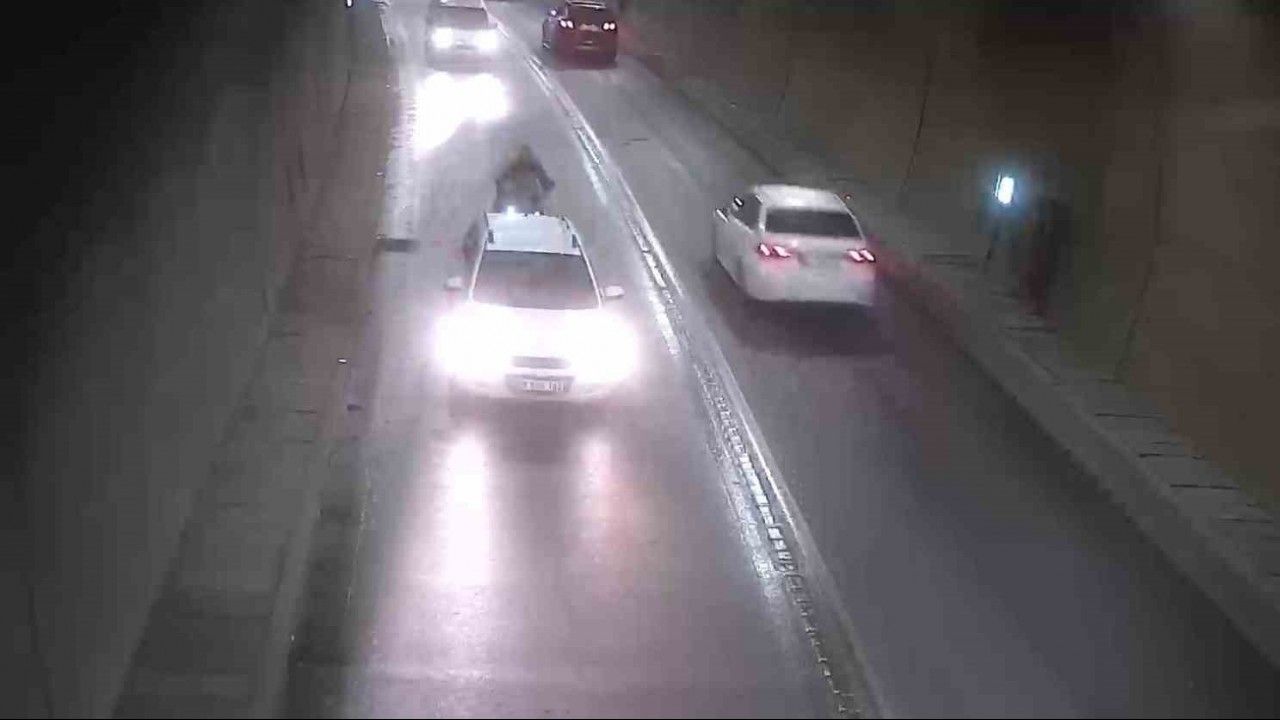 Edinilen bilgiye göre, Ferhat Tünelinde yaşanan kazada yolda bir anda duran otomobilin sürücüsü ikaz lambalarını yaktı. Ancak arkasından gelen motosikletin sürücüsü otomobile çarptı. Motosikletlinin yaralanmadan atlattığı kaza saniye saniye güvenlik kamerası tarafından kaydedildi.