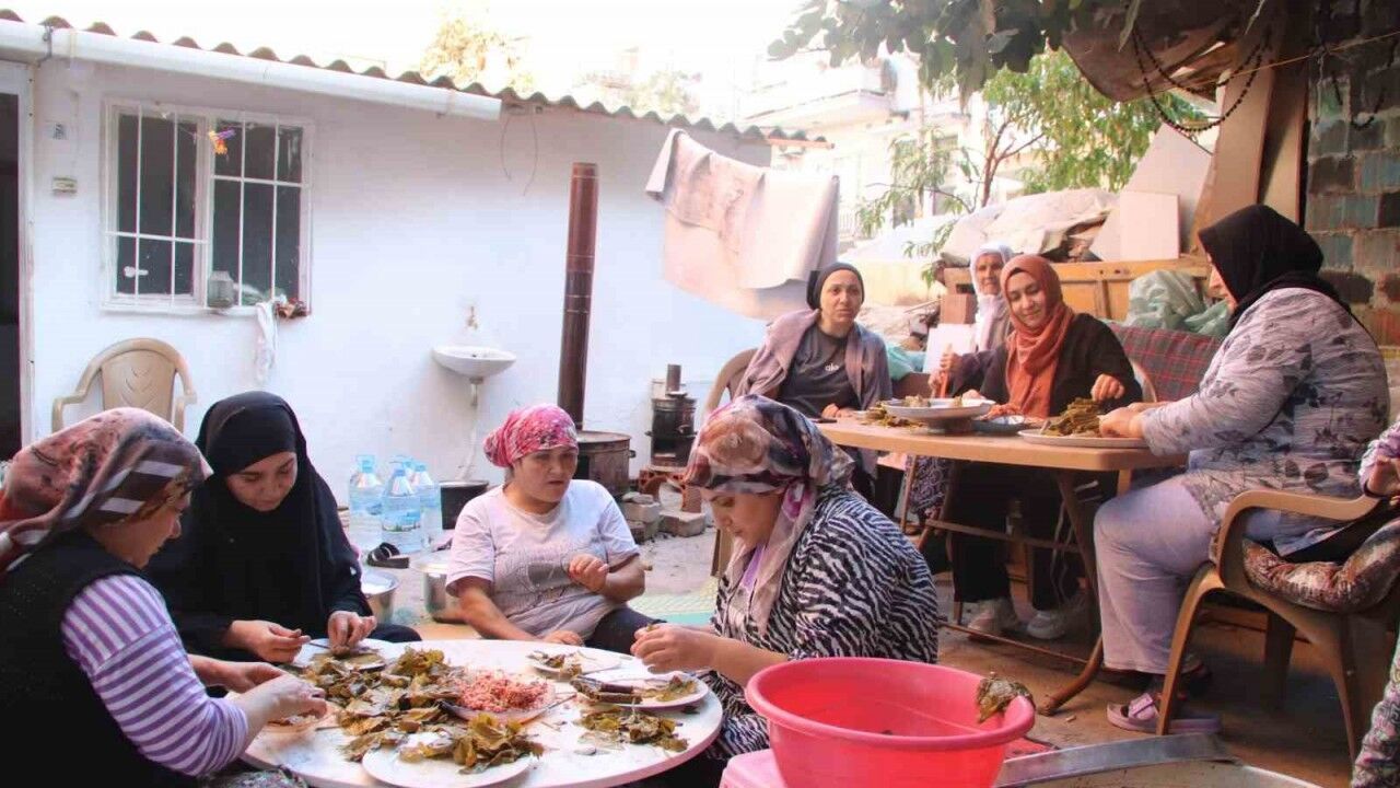 Turgutlu ilçesi Selvilitepe Mahallesinde bir araya gelen mahalle sakinleri toplandıkları bir komşularını evinin bahçesinde sarma sararak Gazze’ye destek amaçlı düzenlenen hayır panayırlarına gönderiyor.