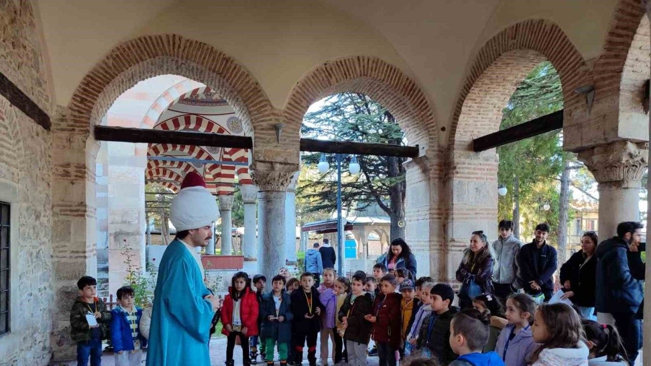Turizm Fakültesi öğretim elemanı Arş. Gör. Özgür Koyun gezide külliyenin tarihi süreci, mimarisi ve Eskişehir’in kültürel yapısındaki konumu hakkında öğrencilere detaylı bilgiler verirken Turizm Fakültesi öğrencisi Furkan Bilici, Külliyenin banisi Çoban Mustafa Paşa’yı temsili bir canlandırmayla tanıttı.